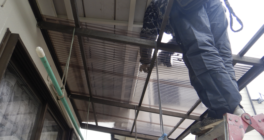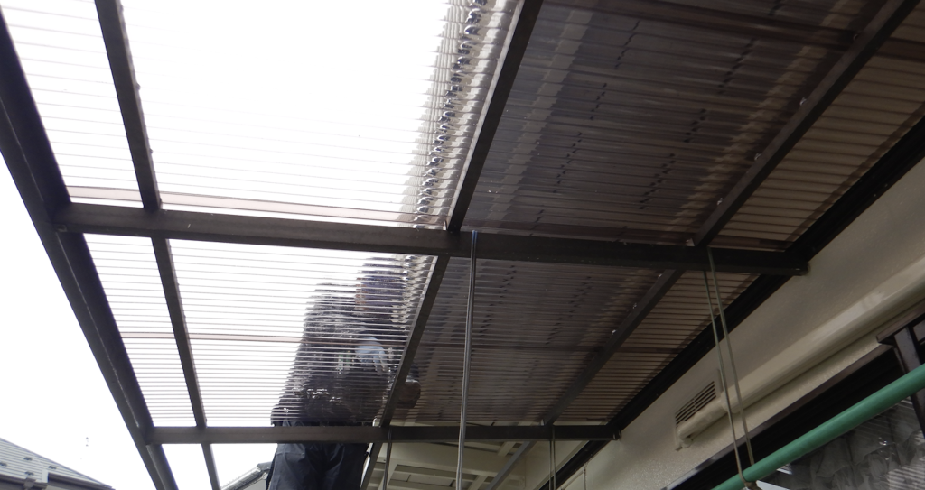 庇 波板新規交換工事 作業状況1