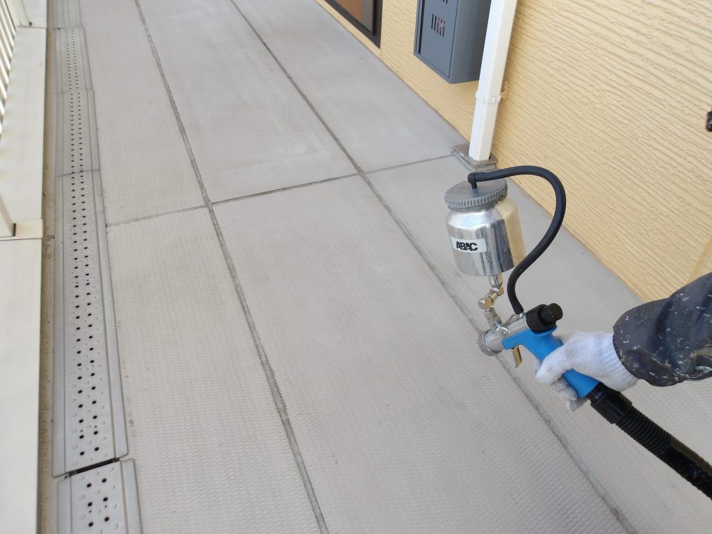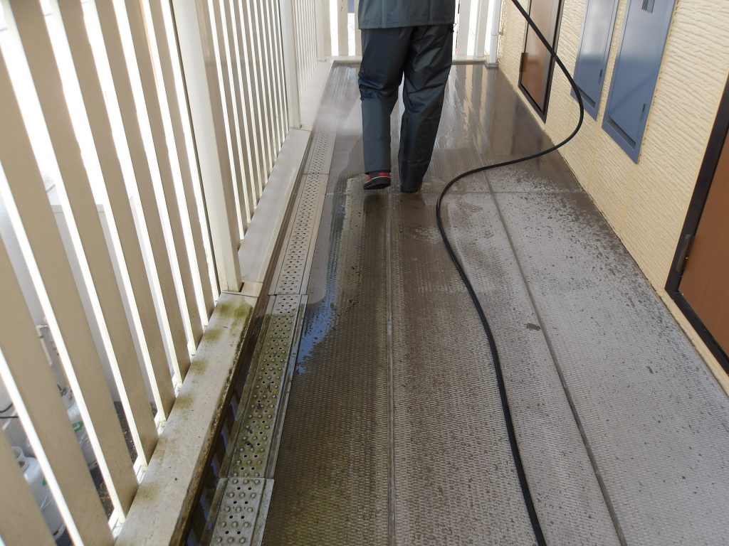アルミ柵・床面青カビ落とし・光触媒コーティング仕上げ