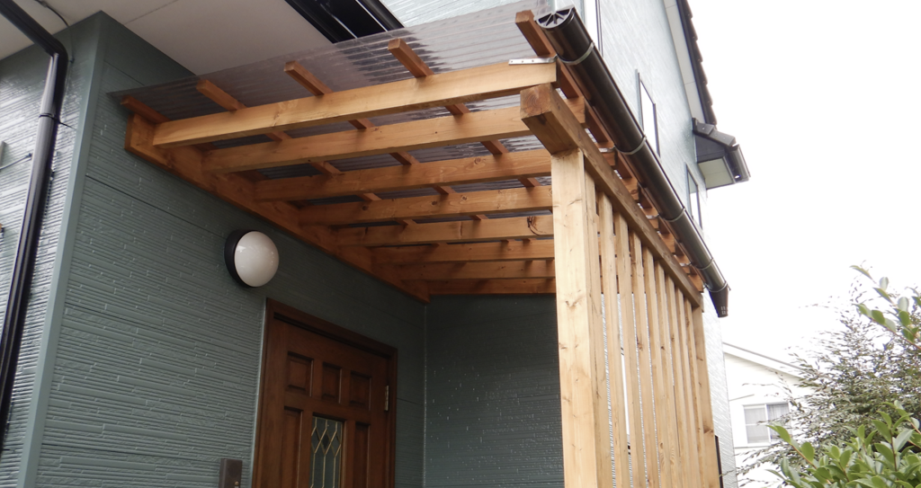 プレハブに屋根、玄関、フォークリフト搬入口の工事