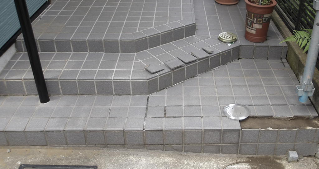 玄関床タイル面 タイル剥がれ補修工事1