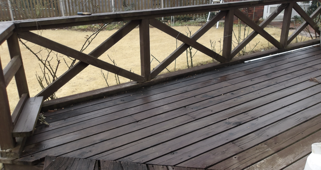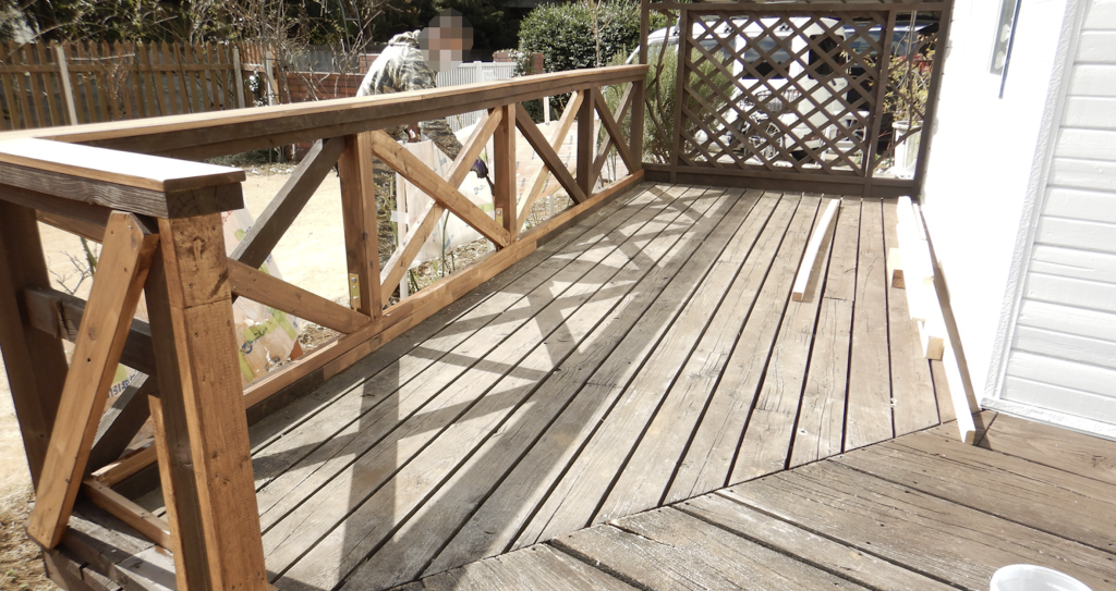 ウッドデッキ 筋交いフェンス 枠・柱傷んだ部分を交換修理 工事完了1