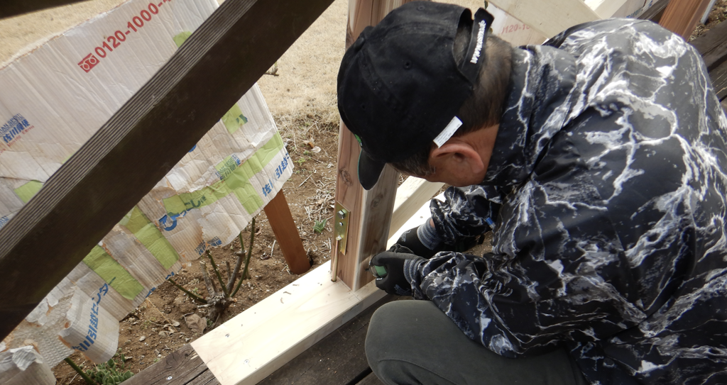 筋交いフェンス 枠・柱傷んだ部分を交換修理 作業状況1