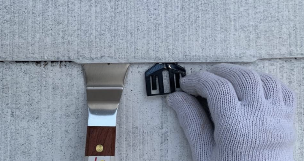 下塗り後に、水捌けを確保のためのタスペーサーを入れます。