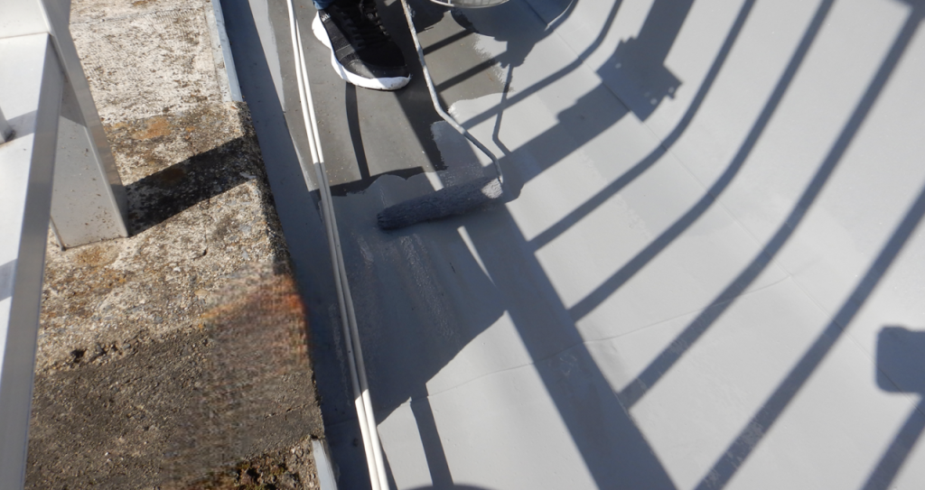 屋上下地調整 プライマー塗布後防水シート部保護塗装