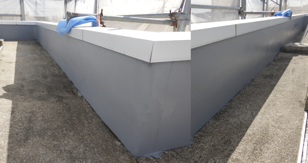 屋上 パラペット防水保護塗装仕上がり状況