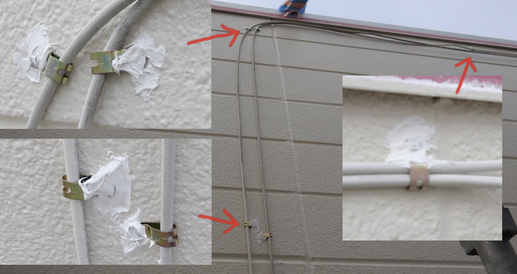 アンテナ線 ぶら下がり金具固定作業状況