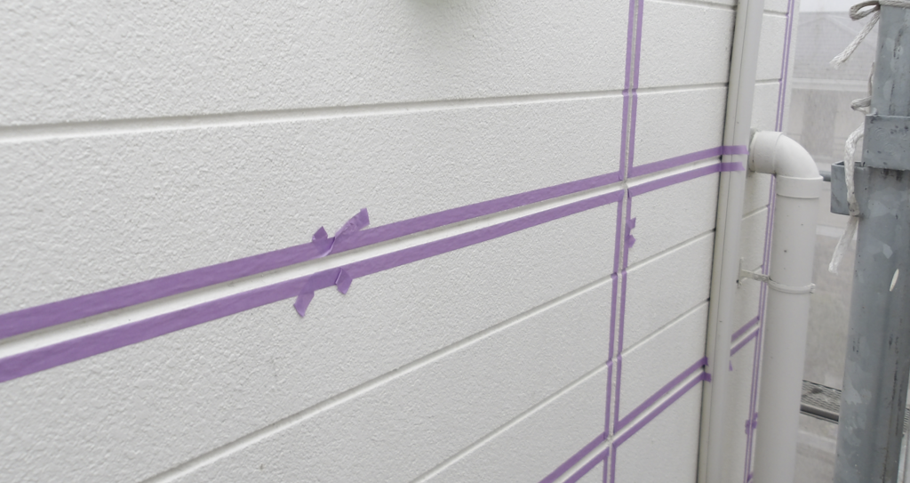 外壁 玄関廻り目地シール用テーピング養生作業状況4