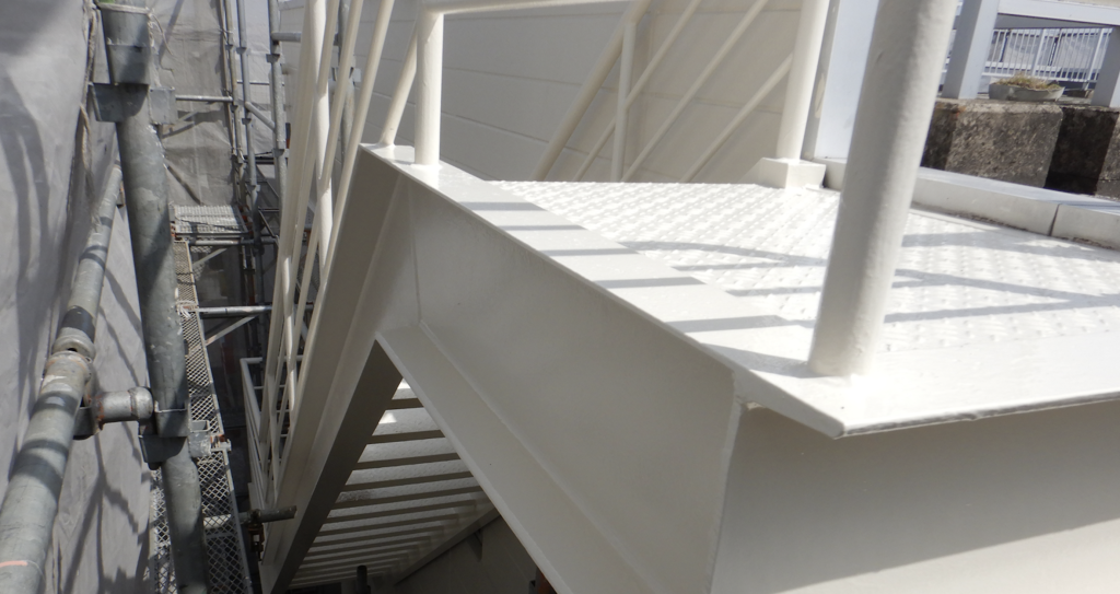 外鉄製階段 上塗り塗装仕上がり状況