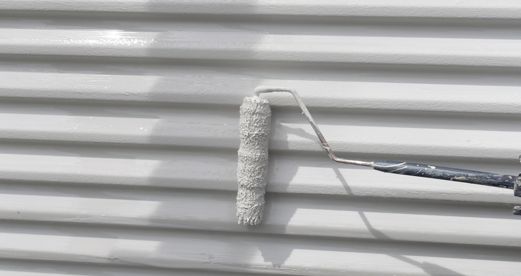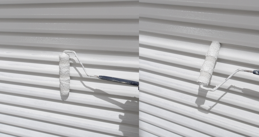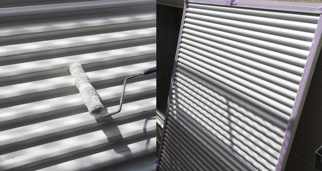 戸袋雨戸鉄部面(ガラリ)下塗り塗装 ローラー塗り作業状況