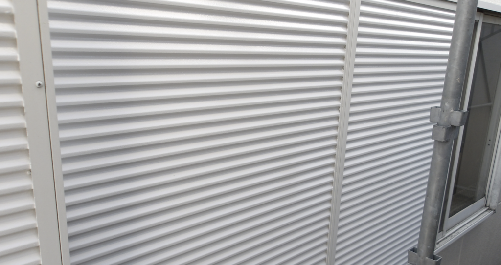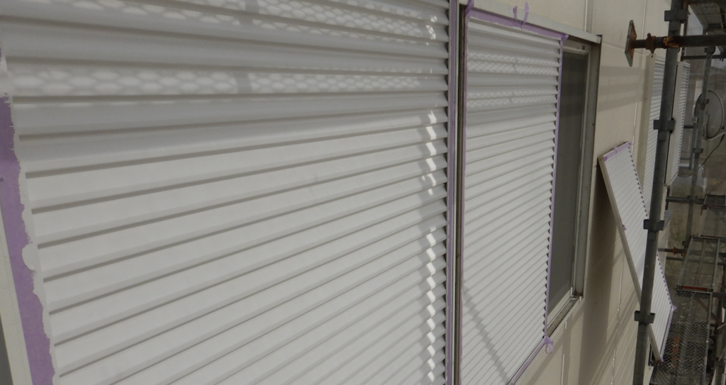 戸袋雨戸 鉄部面(ガラリ)テーピング養生撤去 仕上がり状況