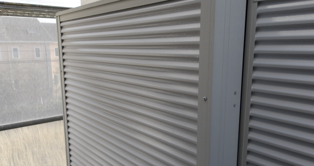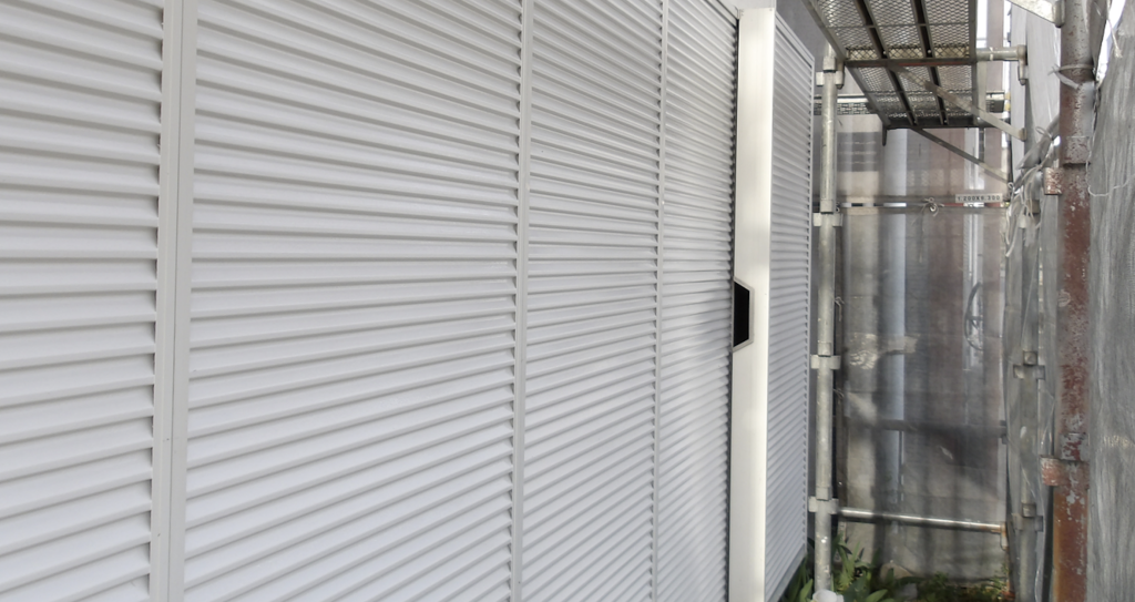 戸袋雨戸 鉄部面(ガラリ)下塗り塗装刷毛塗り作業状況