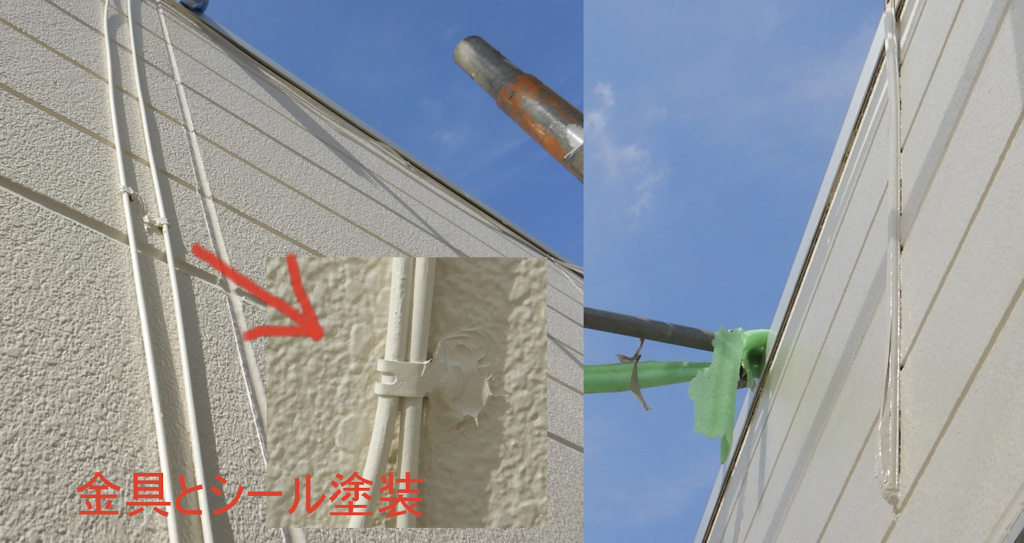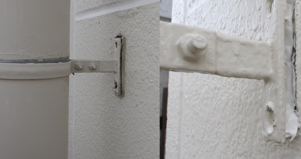 雨水排水管.金具アンカー止めシール打ち シールが乾いたら色付け塗装