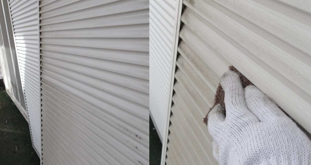 戸袋雨戸 鉄部面(ガラリ)テーピング養生撤去
