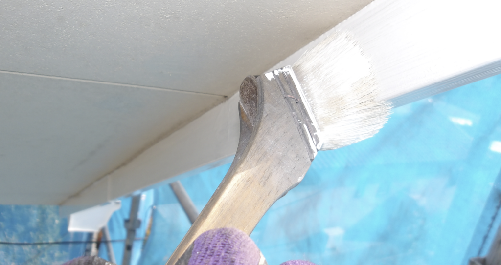テーピング養生 軒天下塗り