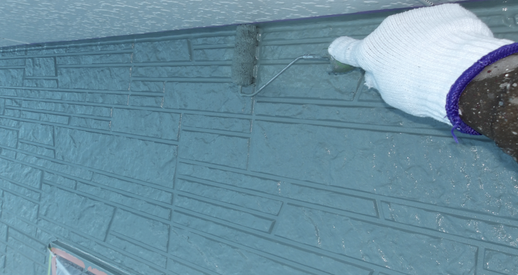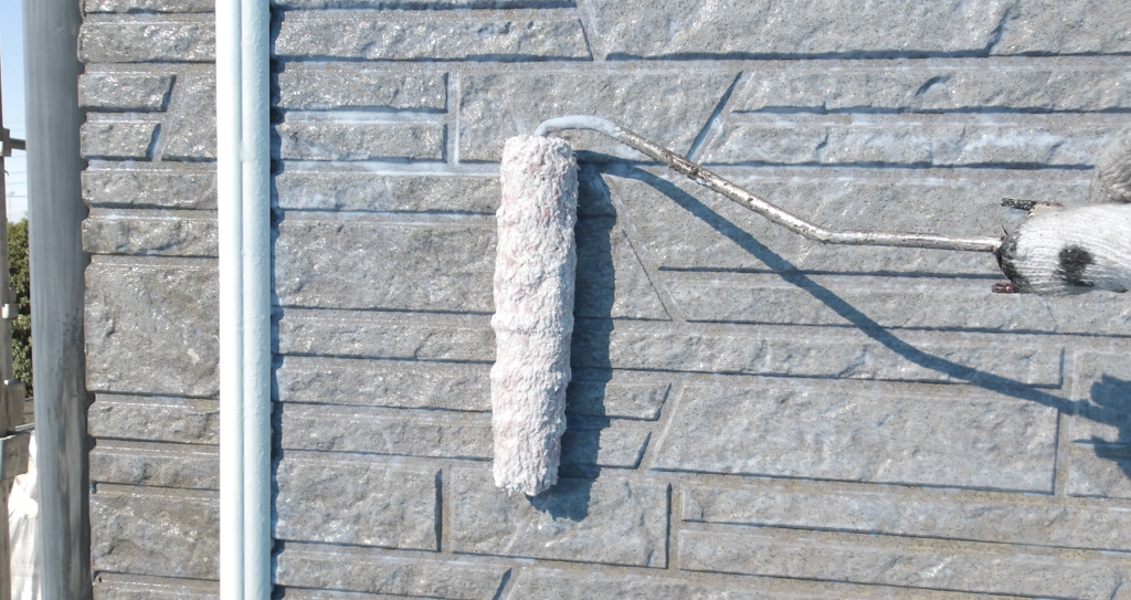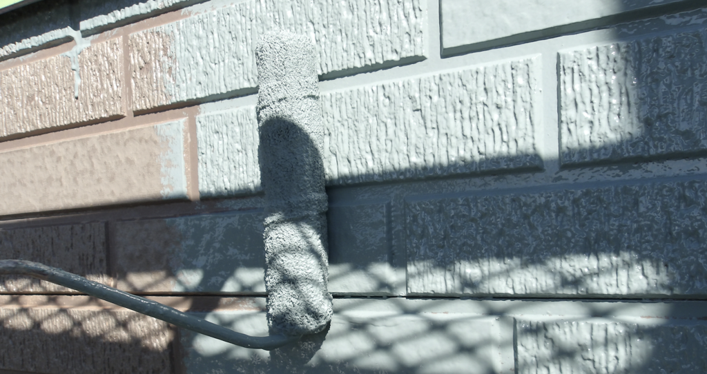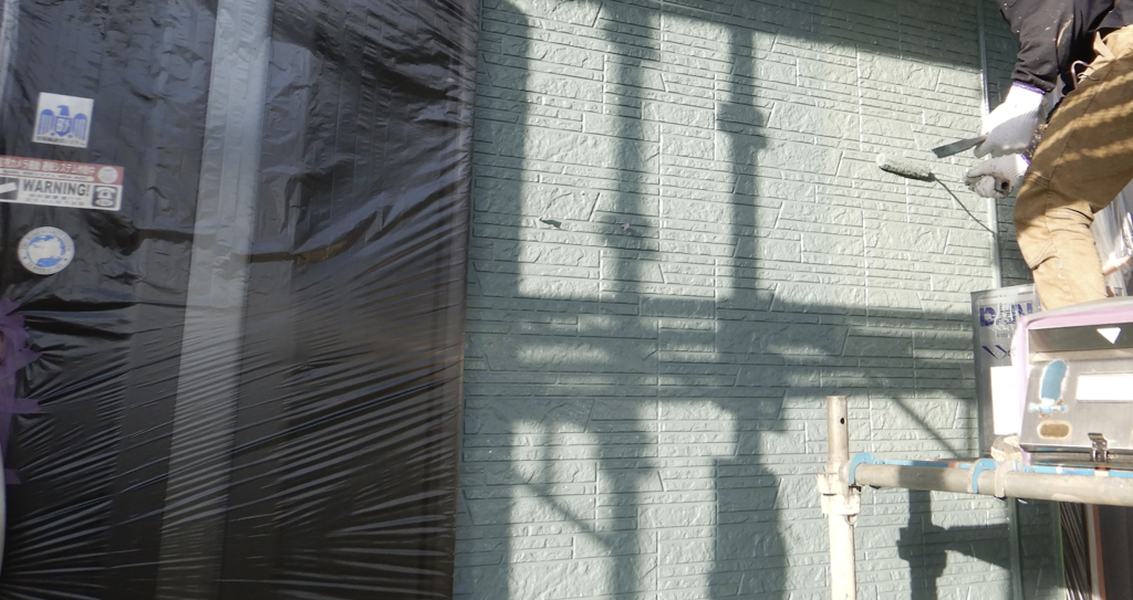 外壁 上塗り塗装 ローラー塗り作業状況