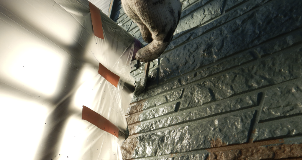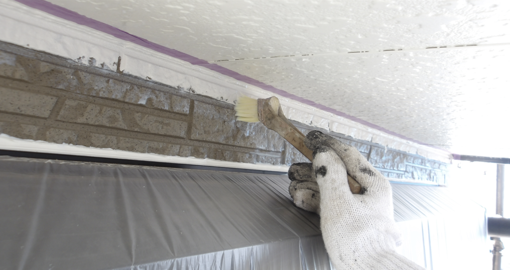 外壁 中塗り塗装 刷毛塗り作業状況