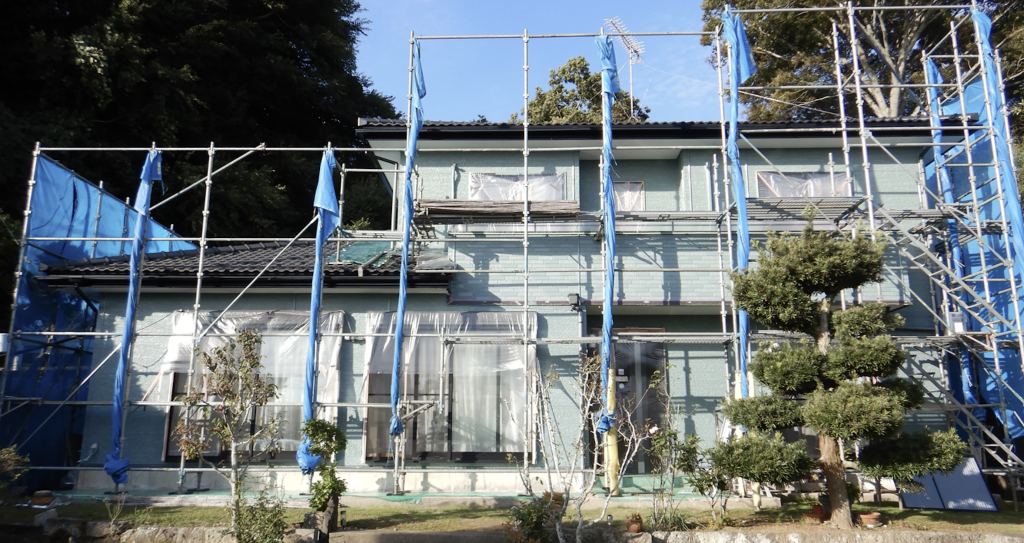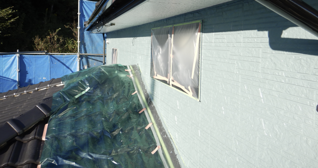 外壁上塗り塗装全面完了 ビニール養生撤去回収処分