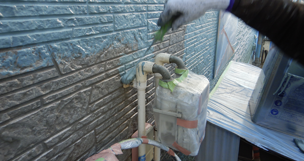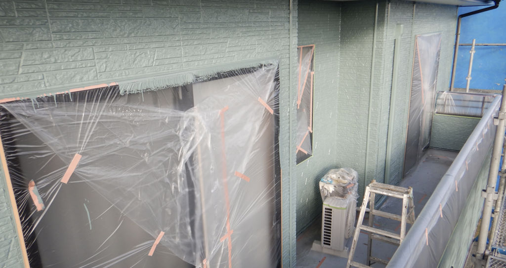 外壁 上塗り塗装 ローラー塗り作業状況 玄関廻り