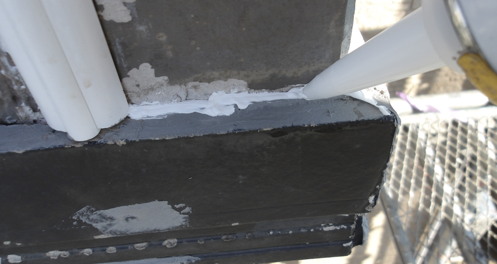 ベランダ帯板隙間 コーキング補修作業状況