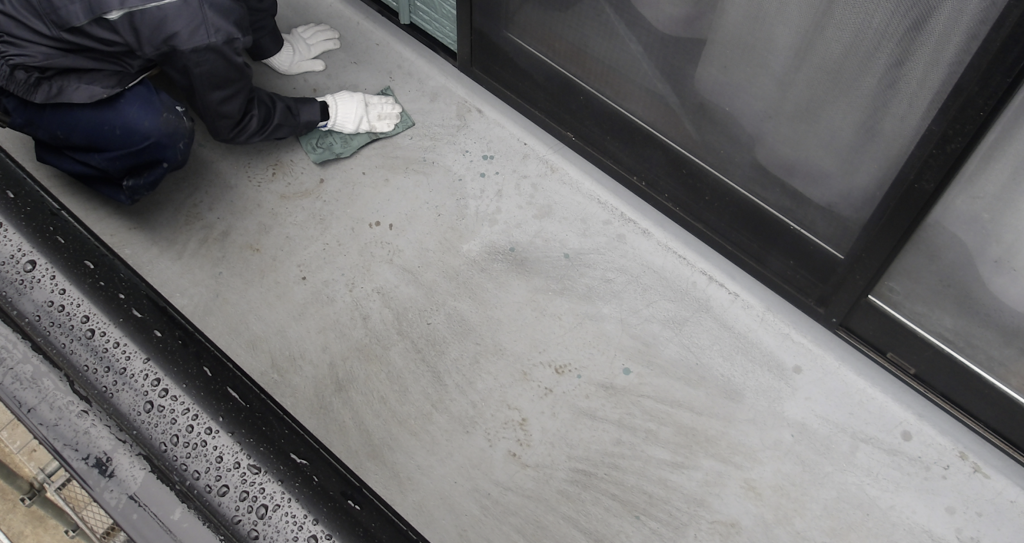 ベランダ床 下塗り塗装作業状況