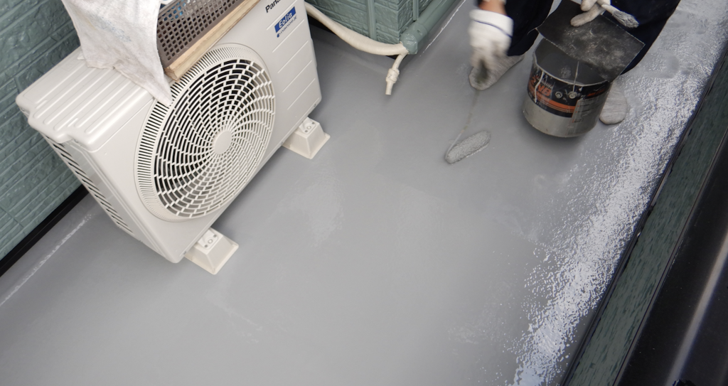 ベランダ床 上塗り塗装仕上作業状況1