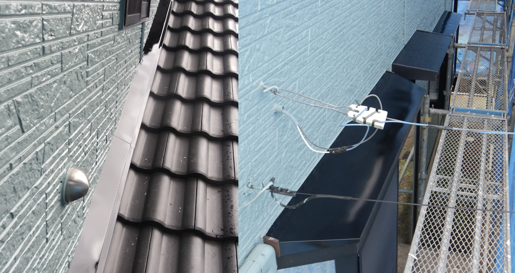下屋根 水切り鉄部面塗装 フッ素UV色ブラックN