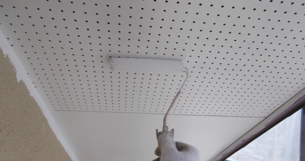 軒天 下塗り塗 装刷毛塗り作業状況