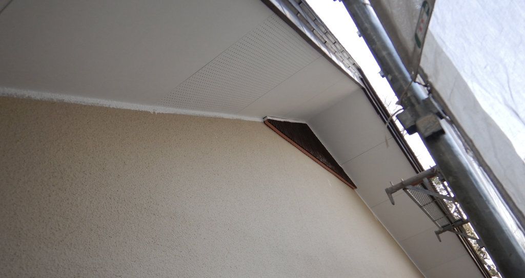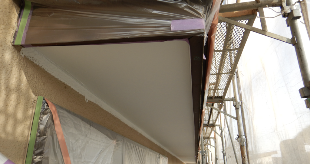 霧除け軒天 上塗り塗装後 仕上がり状況