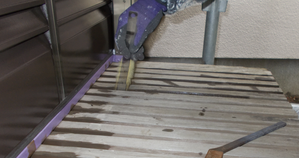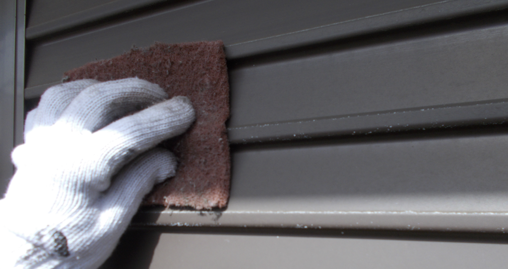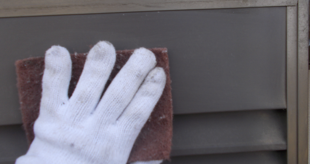 雨戸鉄部面塗装 ケレン作業状況1