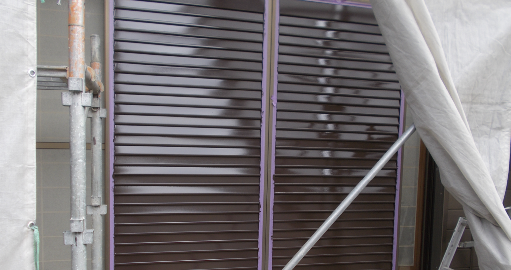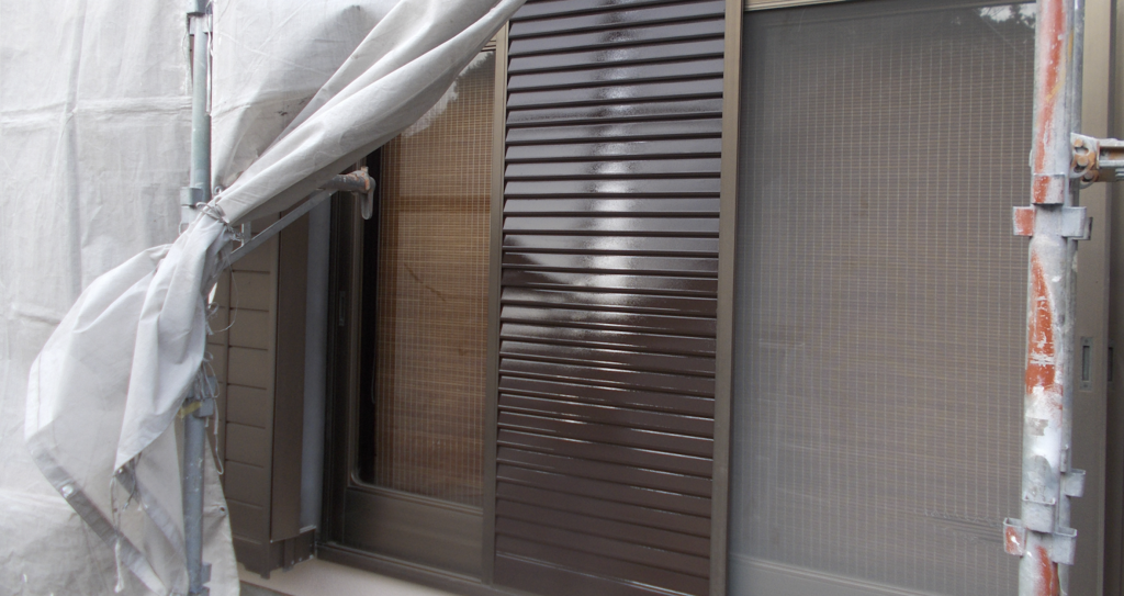 雨戸鉄部面塗装 上塗り仕上がり状況