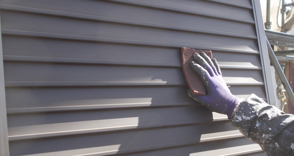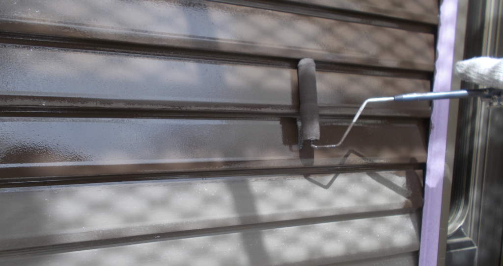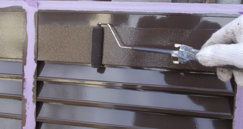 雨戸鉄部面塗装 下塗り塗装 ローラー塗り作業状況