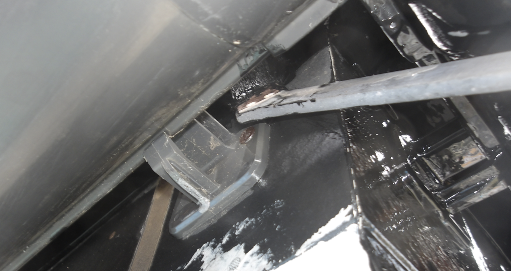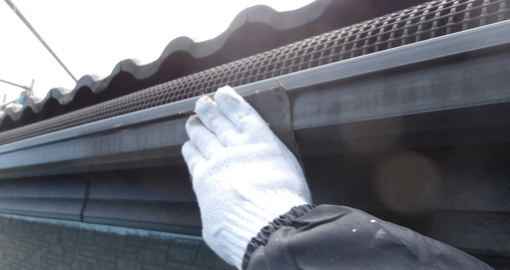 横樋・破風全体 下地調ケレン作業 下塗りプライマー塗布