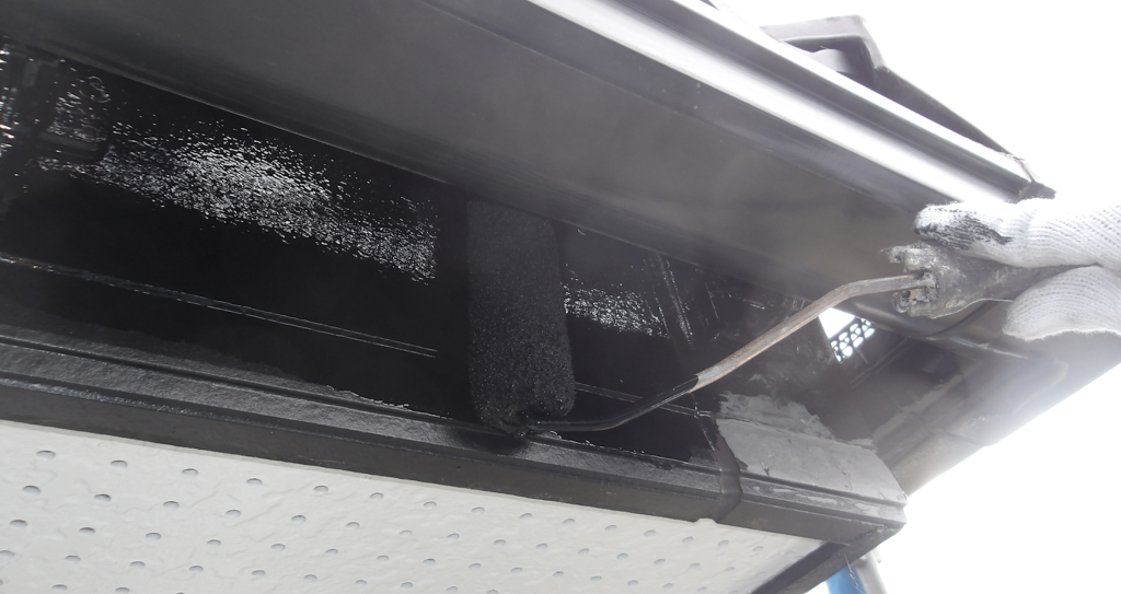 破風板 細かい所もキッチリ 刷毛塗り 中塗り作業状況
